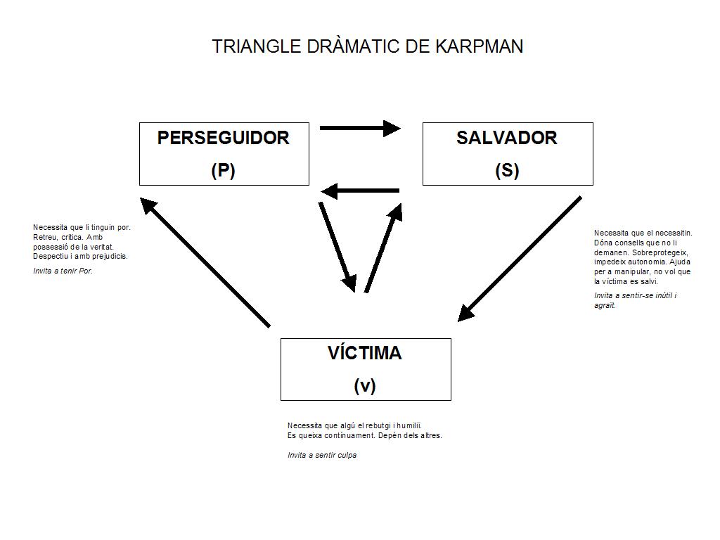 I tu de què vas? Les persones quan ens relacionen amb d’altres persones, de vegades, adoptem tres rols diferents que s’anomenen: Perseguidor, Salvador i Víctima.