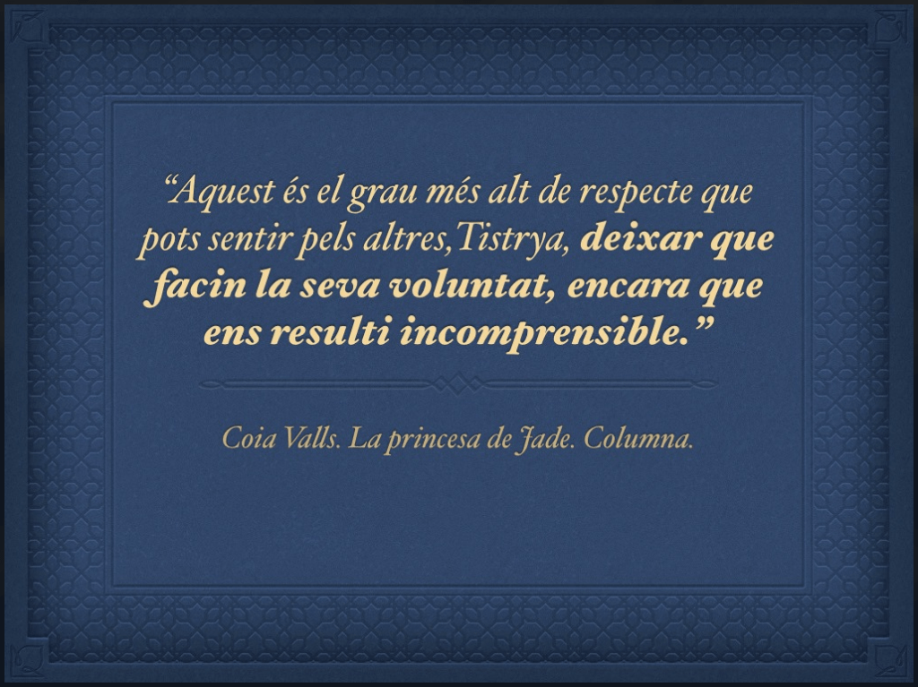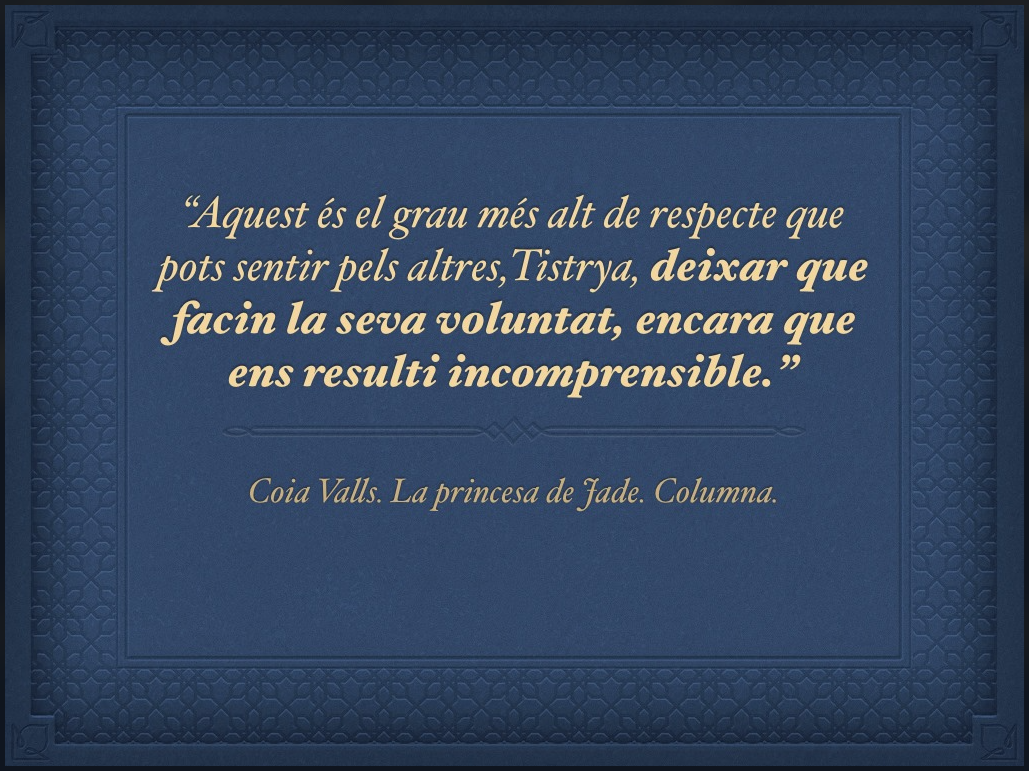 Per resumir, us aconsello que fem les coses per opció i no per obligació, que demanem el que necessitem, tenint en compte, que ens ho poden donar o no, que siguem flexibles amb nosaltres i amb els altres, que acceptem que no necessitem tenir totes les respostes per estar bé i que per molt que intentin fer-nos sentir malament perquè les nostres preferències són unes altres, no deixem de fer allò que volem.